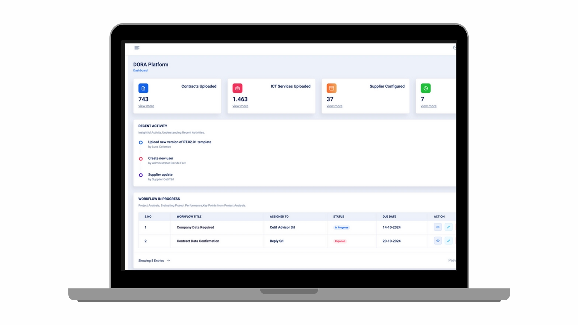 La piattaforma definisce standard informativi al fine di armonizzare i flussi informativi tra Istituzioni Finanziarie e fornitori ICT e ottimizzare i processi di raccolta e certificazione dei dati e delle informazioni per l’implementazione, alla gestione e all’aggiornamento del Registro delle Informazioni: